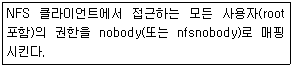 73. 다음에서 설명하는 NFS 서버 설정 옵션으로 알맞은 것은?
