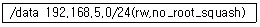 73. NFS 서버에서 /data 디렉터리에 대한 접근 권한을 조건과 같이 설정하였다. 다음 중 관련 설명으로 알맞은 것은?