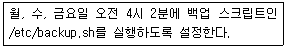 31. 다음 설명에 해당하는 crontab 설정으로 알맞은 것은?