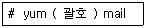 36. 다음은 yum 명령을 이용해서 mail이라는 문자열이 들어있는 패키지를 찾는 과정이다. ( 괄호 ) 안에 들어갈 내용으로 알맞은 것은?