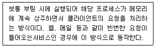 • "standalone"은 서버 프로그램이 독립적으로 실행되는 것을 의미합니다. 즉, 다른 서비스나 데몬에 의존하지 않고 바로 실행됩니다. 그림에서 보이는 것처럼 "standalone"은 직접적으로 클라이언트와 통신하며 요청을 처리합니다. 따라서 다른 옵션들과 달리 별도의 데몬이나 서비스가 필요하지 않습니다.