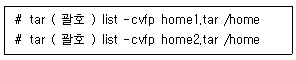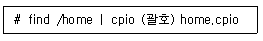 26. 다음은 cpio 명령을 이용해서 /home 영역을 백업(Backup)하는 과정이다. ( 괄호 ) 안에 들어갈 내용으로 알맞은 것은?
