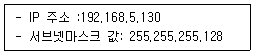 5. 다음과 같은 조건일 때 설정되는 게이트웨이 주소값으로 알맞은 것은?