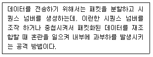62. 다음 설명에 해당하는 DoS 공격으로 가장 알맞은 것은?
