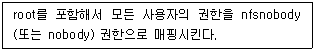 91. 다음 설명에 해당하는 NFS 서버 설정 옵션으로 알맞은 것은?