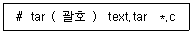 39. 다음은 현재 디렉터리 안에 존재하는 C 언어 파일을 기존에 생성되어 있던 text.tar 파일에 묶는 과정이다. ( 괄호 ) 안에 들어갈 내용으로 알맞은 것은?