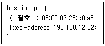 93. 특정 MAC 주소를 갖는 네트워크 어댑터에 고정적으로 IP 주소를 할당하기 위해 관련 설정을 진행하는 과정의 일부이다. 다음 ( 괄호 ) 안에 들어갈 내용으로 알맞은 것은?